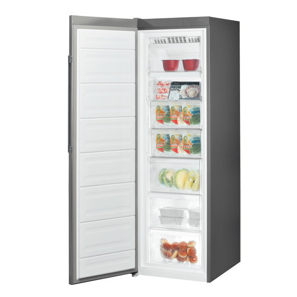 This Indesit freestanding upright tall Freezer features: a tall appliance to fit your family needs. Inox color. No Frost, frost free technology, that reduces the humidity inside the freezer, effectively preventing ice build-up.